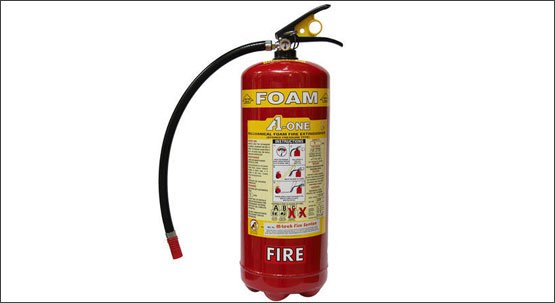 Foam fire extinguishers are marked with a blue band. Foam fire extinguishers work by covering a burning flammable liquid with a blanket of foam, cutting off the fire’s air supply and preventing the release of flammable vapours.
